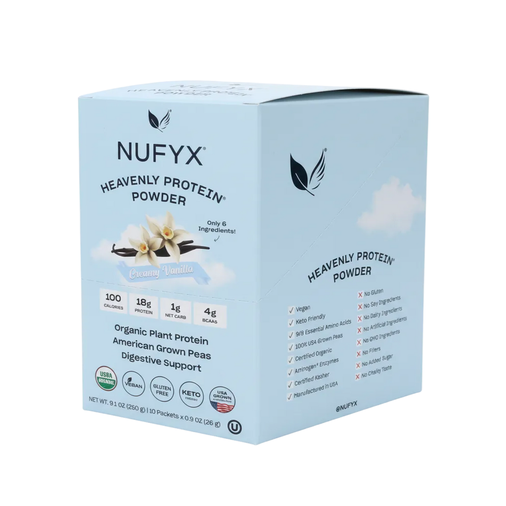 “The cleanest pea protein out there! NUFYX uses 100% USA grown organic peas for this powerful plant fuel.”